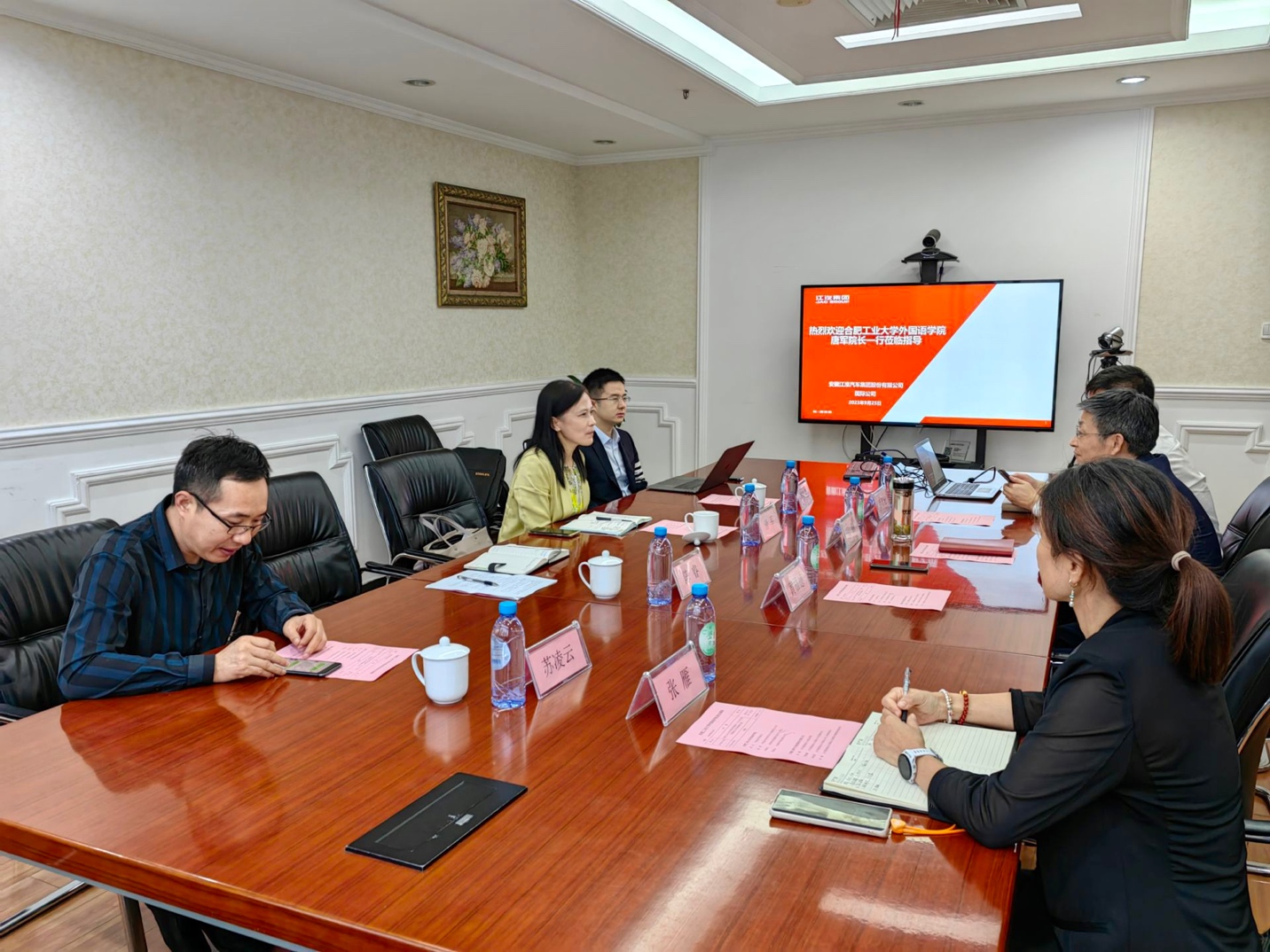 唐军介绍了999策略手机论坛版在科技、工程外语教学、语言文化产品对外译介、国际化实习项目、复合型人才培养等各方面的办学、科研成果。唐军表示通过此次调研,收获了合肥本地龙头企业对招录和培养国际化人才的具体需求,了解了当前汽车领域的行业发展动向和国际化营销、合作、服务的发展方向,为双方在未来的产教研融合、院企合作、人才培训等方面合作打下了坚实基础。