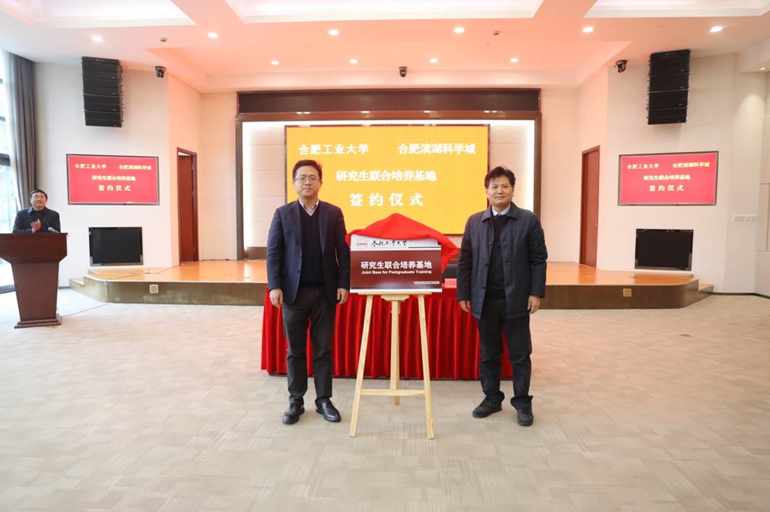 12月13日,999策略白菜网站与合肥滨湖科学城管理委员会(“滨湖科学城”)举行共建研究生联合培养基地授牌仪式。校党委常委、副校长汪萌和滨湖科学城管委会党工委委员、管委会常务副主任吴爱国共同为基地揭牌。